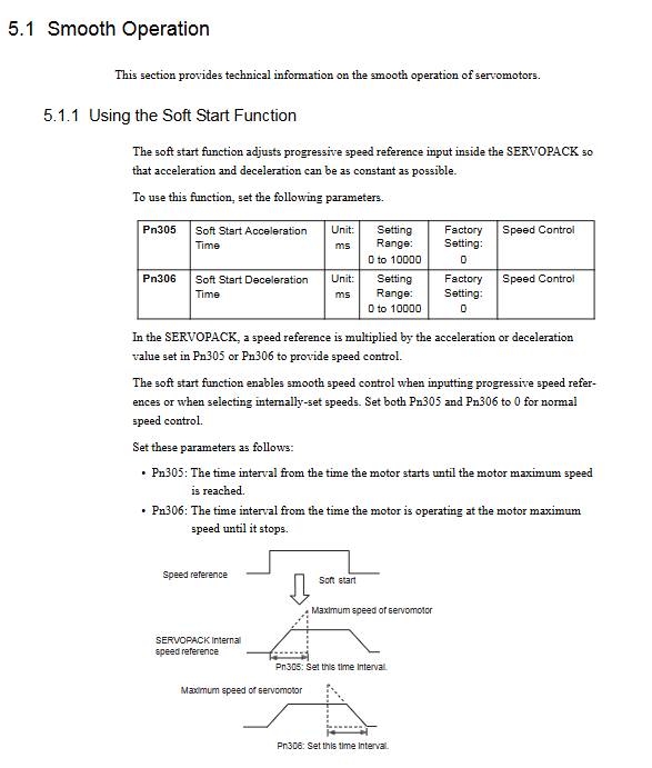 Pn305/Pn306 soft start acceleration/deceleration time (0-10000ms)