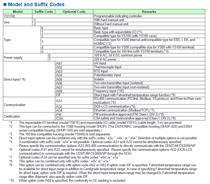 YS80 internal unit compatible YS1700-x3x 5 2-channel 1-5V DC (1 channel can be changed to 4-20mA) 6 compatible with old devices such as YS80, EBS, I, EK, HOMAC, etc