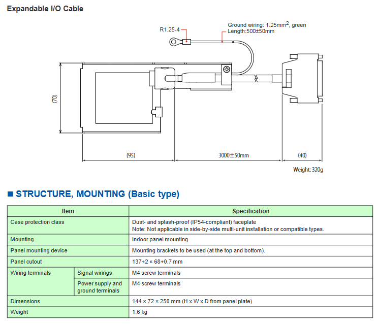 Expansion I/O installation: The expandable I/O type requires YS010 expansion terminals and YS011-03 expansion cables (3 meters), with a cable bending radius of ≥ 60mm.