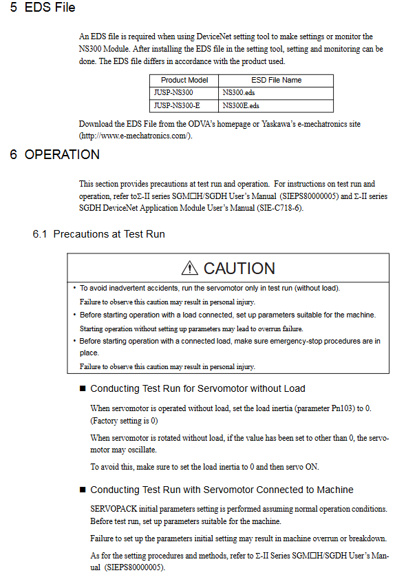 Troubleshooting: First refer to the troubleshooting section of the ∑ - II series SGMH/SGDH user manual. If it cannot be resolved, contact the local representative office in Yaskawa.