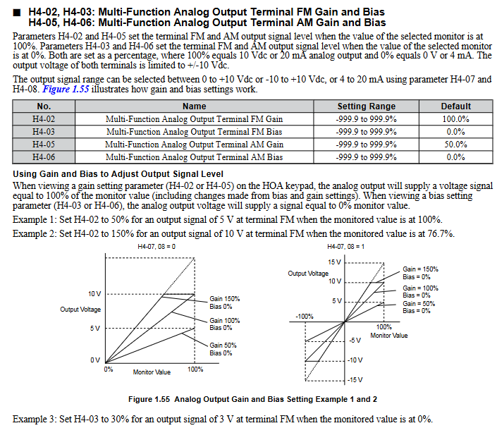 H4 group (analog output): 2 analog terminals (FM/AM), capable of outputting monitoring data such as frequency, current, power, etc., supporting gain/bias adjustment.