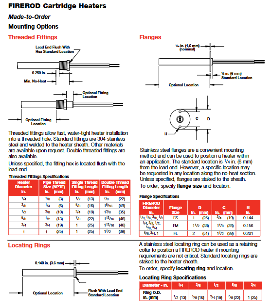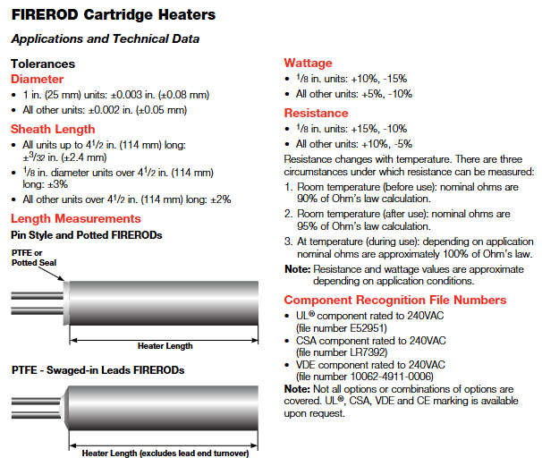 High temperature FIREROD high-temperature working condition specific 1800 ° F (982 ° C) 100 W/in ² (15.5 W/cm ²) sealing design reduces oxidation, high emissivity sheath enhances heat transfer
