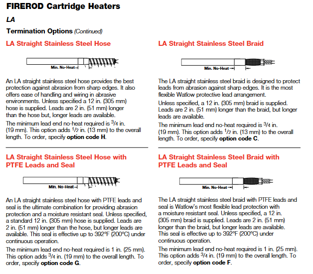 Extension without hot zone: The lead end or terminal without hot zone can be extended (up to 2.5 inches) to avoid the influence of high temperature on the lead.