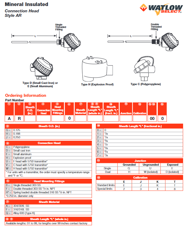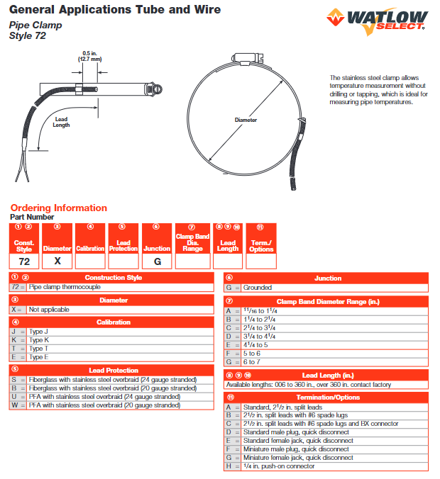 Installation method: Choose micro curved type (Style 12) for narrow spaces; Pipeline temperature measurement using clamp type (Style 72); Choose pad type (Style 74) or MICROCOIL for surface temperature measurement ™。