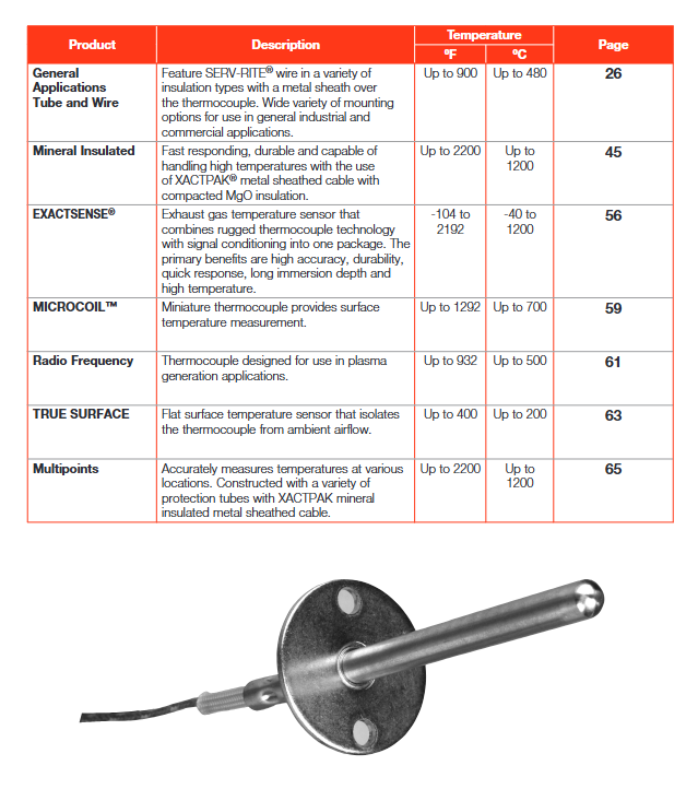 MICROCOIL ™ Series: Micro spiral design, suitable for surface temperature measurement, isothermal measurement area ensures accuracy, temperature range -40 ° C to 700 ° C, coil diameter 0.125 inches, spring loaded design suitable for uneven surfaces.